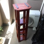 今回は杭を4本、四角に配して上側に回転式の台を作ってぬくみちゃんを固定します。