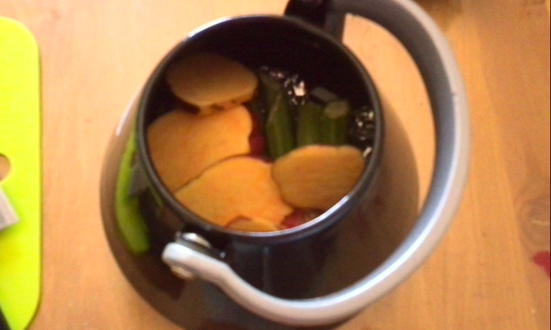 オクラは完全に失敗です。ある程度柔らかくなっていますが、オクラを茹ですぎた時に感じる青臭いいやな風味が表れています。この調理法は合わないようです。
