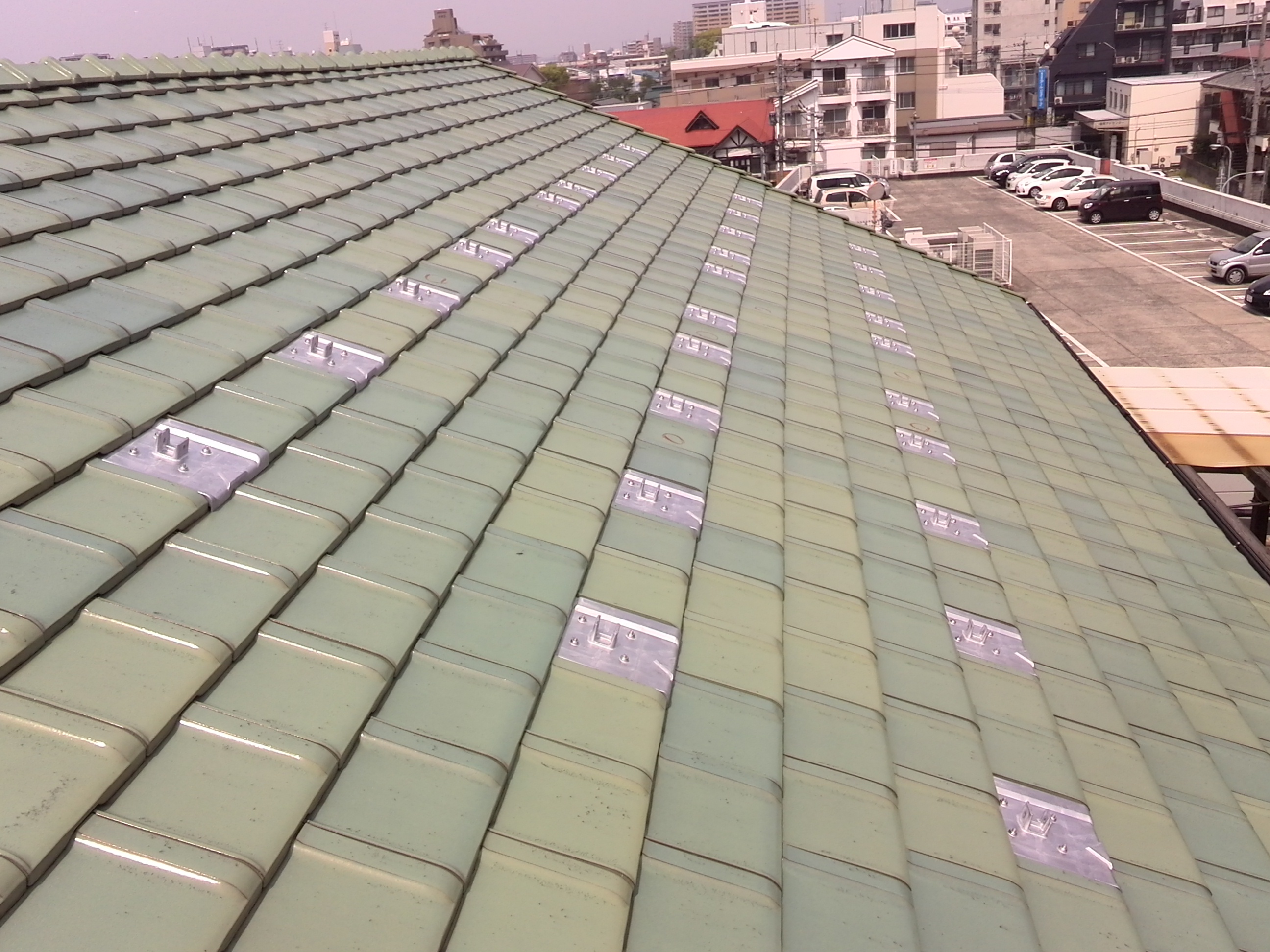 いつもお世話になっていますT社長宅の太陽電池の金具付けなどやっていました。
