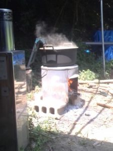 流しそうめんをしたり、温泉卵を作ったりとアウトドアクッキングを楽しみつつ、傍らでどんどん薪をくべます。