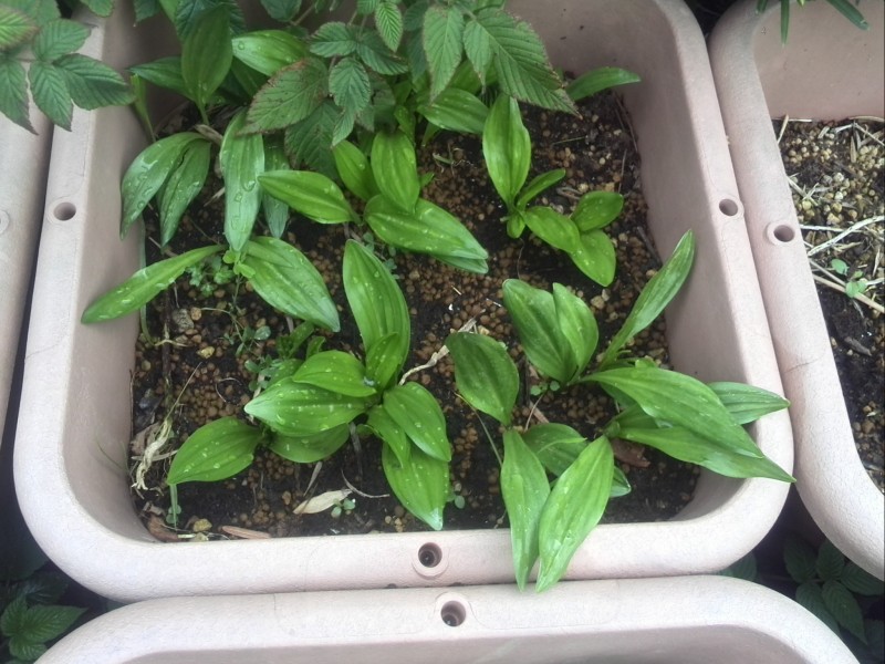まだ若い葉を少し取って(3枚以上生えている株から1枚だけいただく)、チヂミのたれ用に前日から漬け込みました。