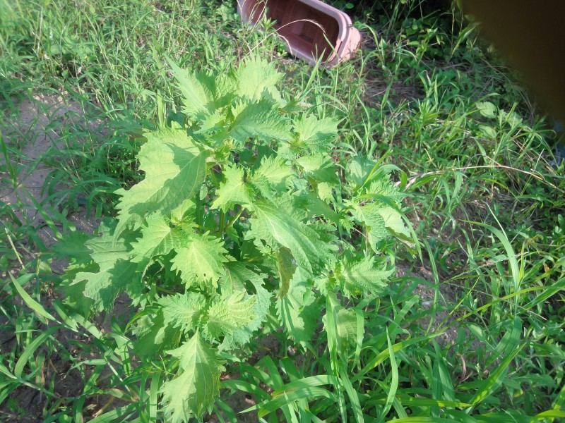 大葉も丼に使います。うちの畑では赤シソ・大葉・エゴマが勝手に生えてきますが大葉は他に比べると控えめに生えてきますね。