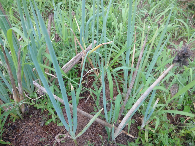 雑草に覆われていた九条ネギ。明日のゴマアジ丼?(魚は未定)に刻んで入れるのが楽しみです。