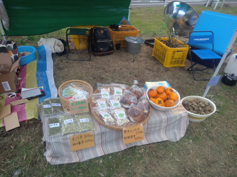 マコモ茶、柿の葉茶、サツマイモ(焼き芋)、といった感じです。そこそこ売り物も準備できましたね。
