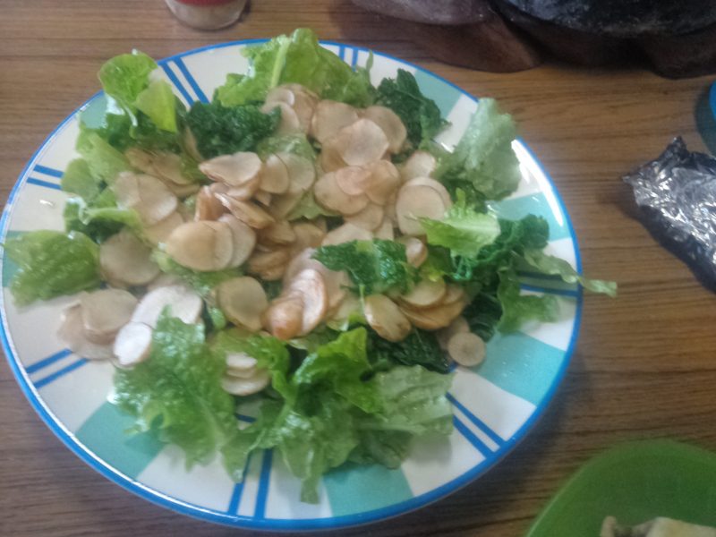 キクイモと、ぬくみねっと畑のレタス・かつお菜のサラダはしゃっきりと。