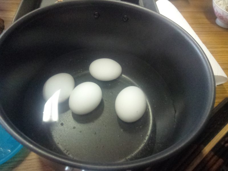 卵は、黒アルミ箔で直接包んだものは柔らかめのゆでたまごになりました。水から温めたものは残念ながら固まりませんでした。