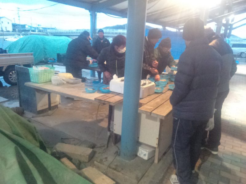 さて、私 約1名は、結構寒い中早起きして津屋崎漁港に行きました。