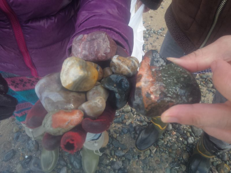 この海岸では、磨けばステキに光りそうないい感じの石が沢山転がっています。