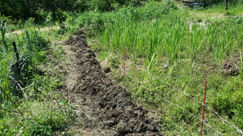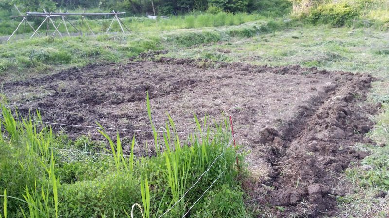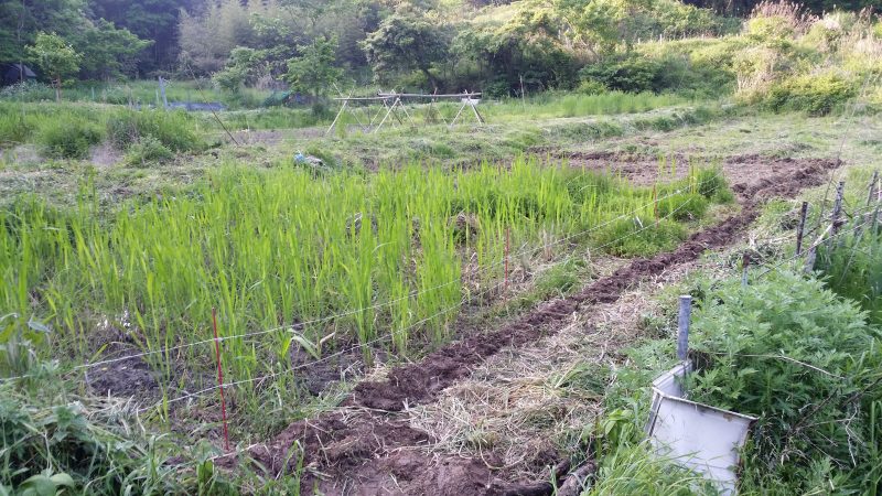 雑草を刈り、耕運機で耕してマコモ田を広げるエリアを作りました。