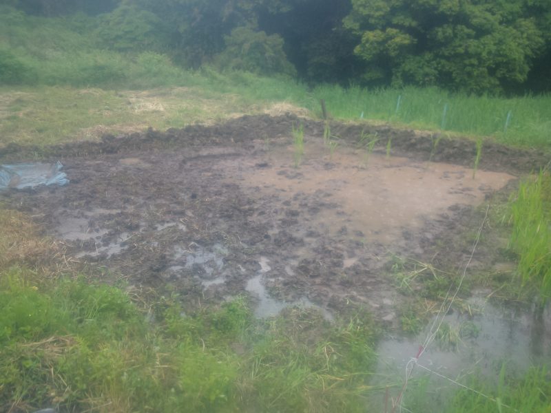 6m x 6m程度と小さな範囲ですが、人力で水たまりをつくるならばこの程度が限度と思いました。