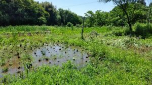 手光の山のマコモ田、みんなで草取りして結構マコモの雰囲気が把握できるようになりました。