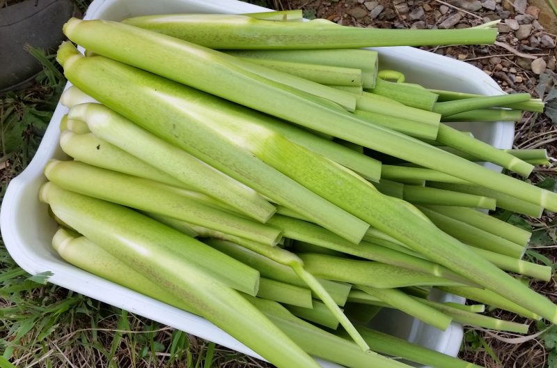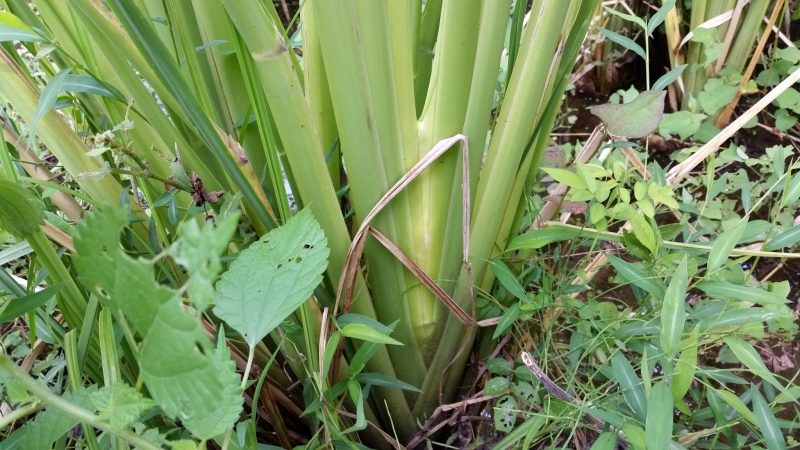 9月半ば マコモの根本が膨らみ白い部分がわずかに出てきたら収穫