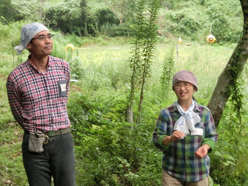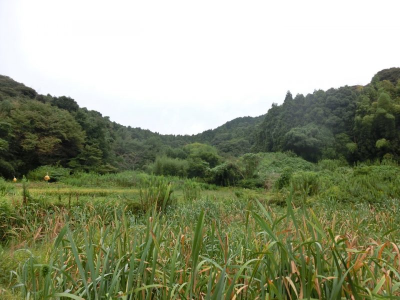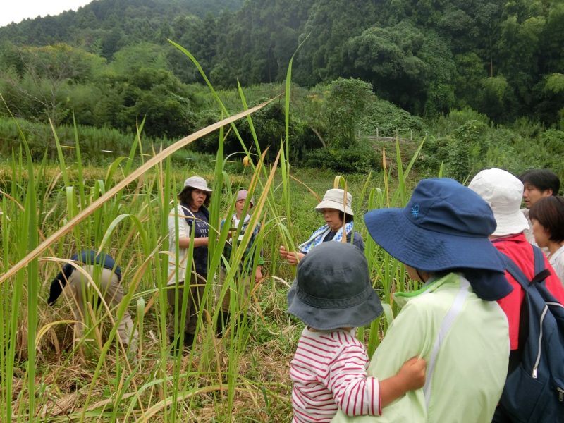 途中でマコモダケの収穫に。マコモ田は管理が行き届かず雑草に圧されて
