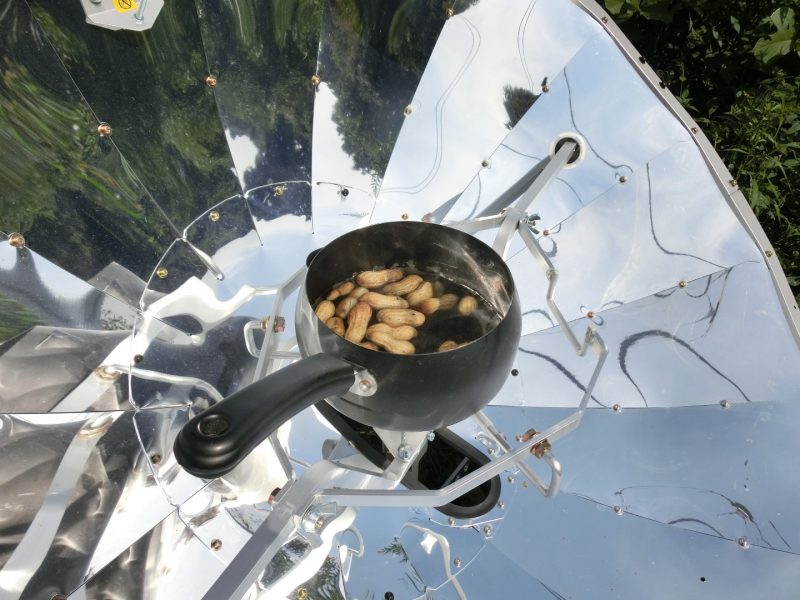 一部の落花生をソーラークッカーで加熱してみましたが、太陽がしっかり射すようになったので